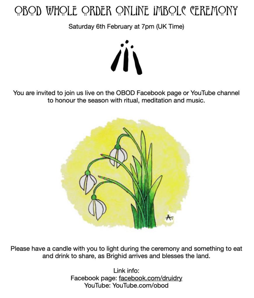 2月6日星期六太平洋時間早上11點,來參加OBOD的線上聖燭節典禮吧!
