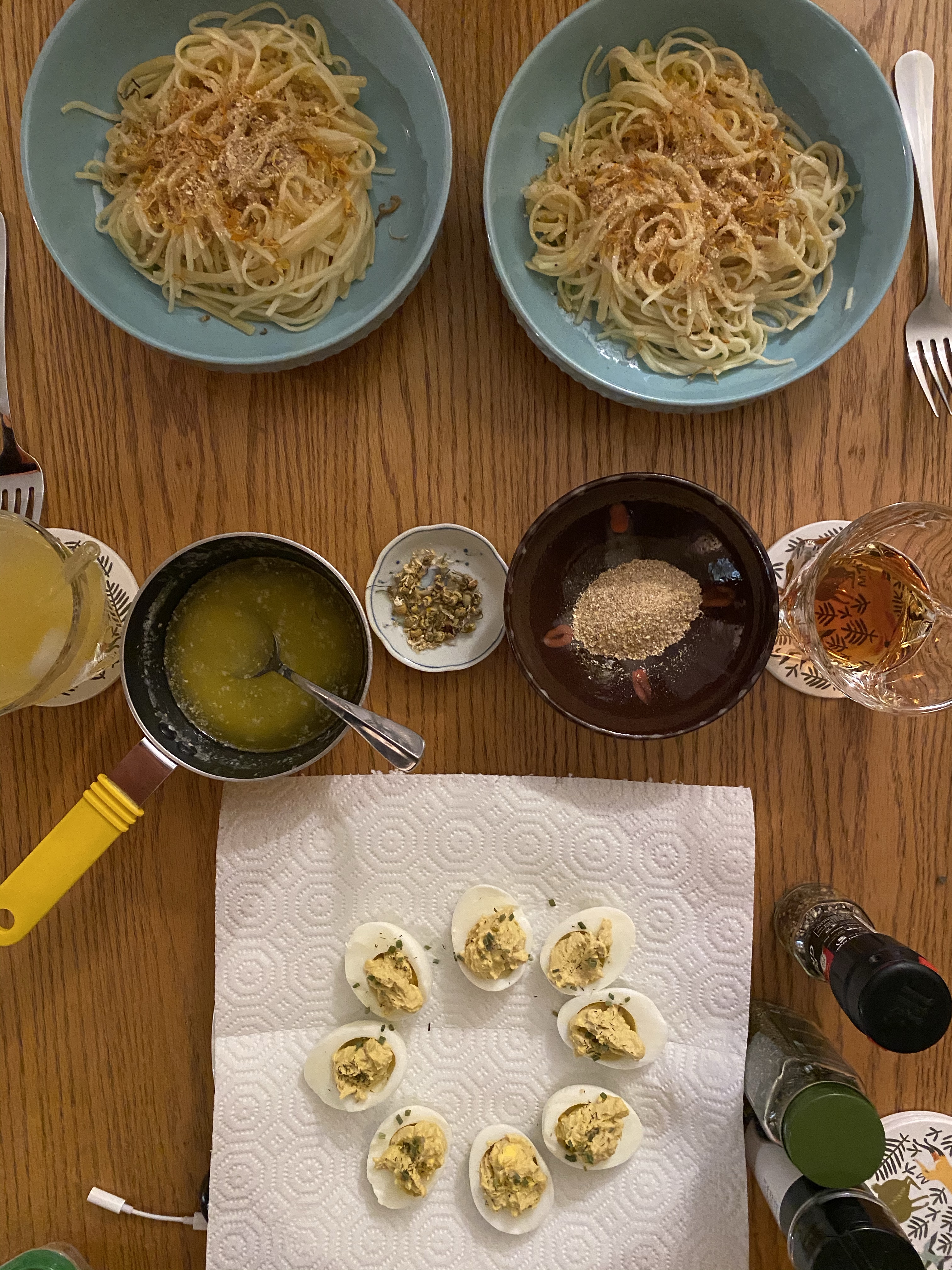 之前找到了些春分食譜,我還真的做了這個移花宮菊花奶油茉莉花茶義大利麵。