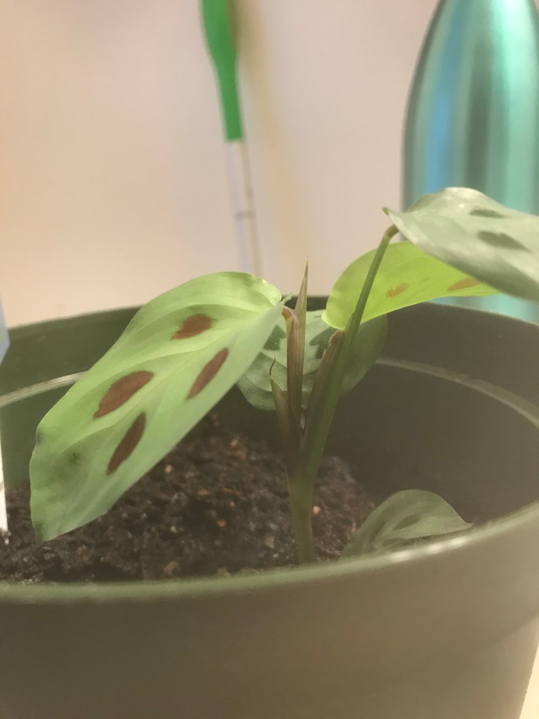 而生命力最強悍,長得也最好的植物是朋友送的竹芋(maranta)以及黃金葛,朋友分支給我的時候,只有兩片葉子。結果葉子不斷長大,整整一年之後,從兩葉變四葉。這是正常還是發育遲緩?