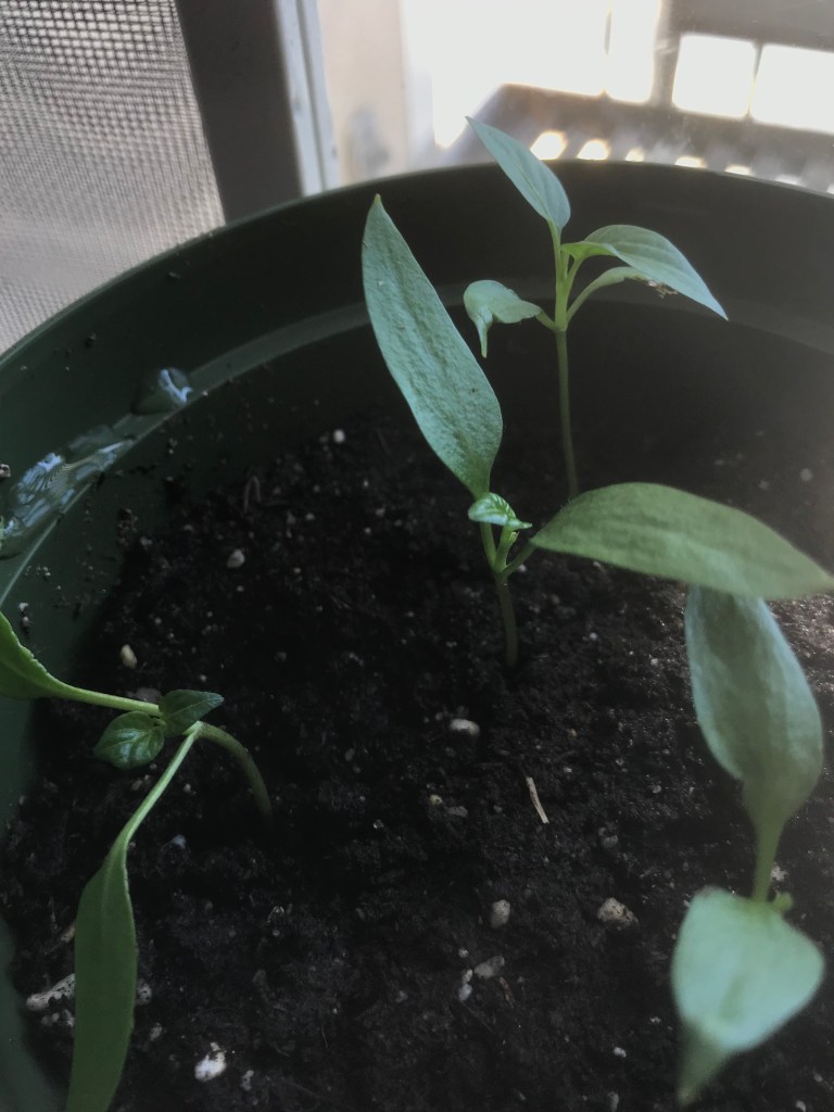 四株甜椒苗中,有兩株還在,其中一株以前是侏儒,我以為他已經不會再長葉子了,看起來時日不多,結果今天春天似乎又蹦出了生命力,雖然仍矮小貼近土面,但葉子變得茂盛。看起來其實活過來了,而且需要更多土壤札根。