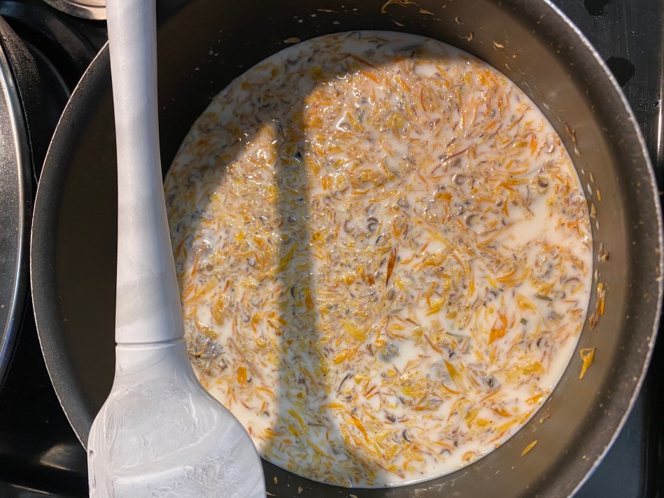 牛奶慢燉,還有滿滿的乾燥金盞花。