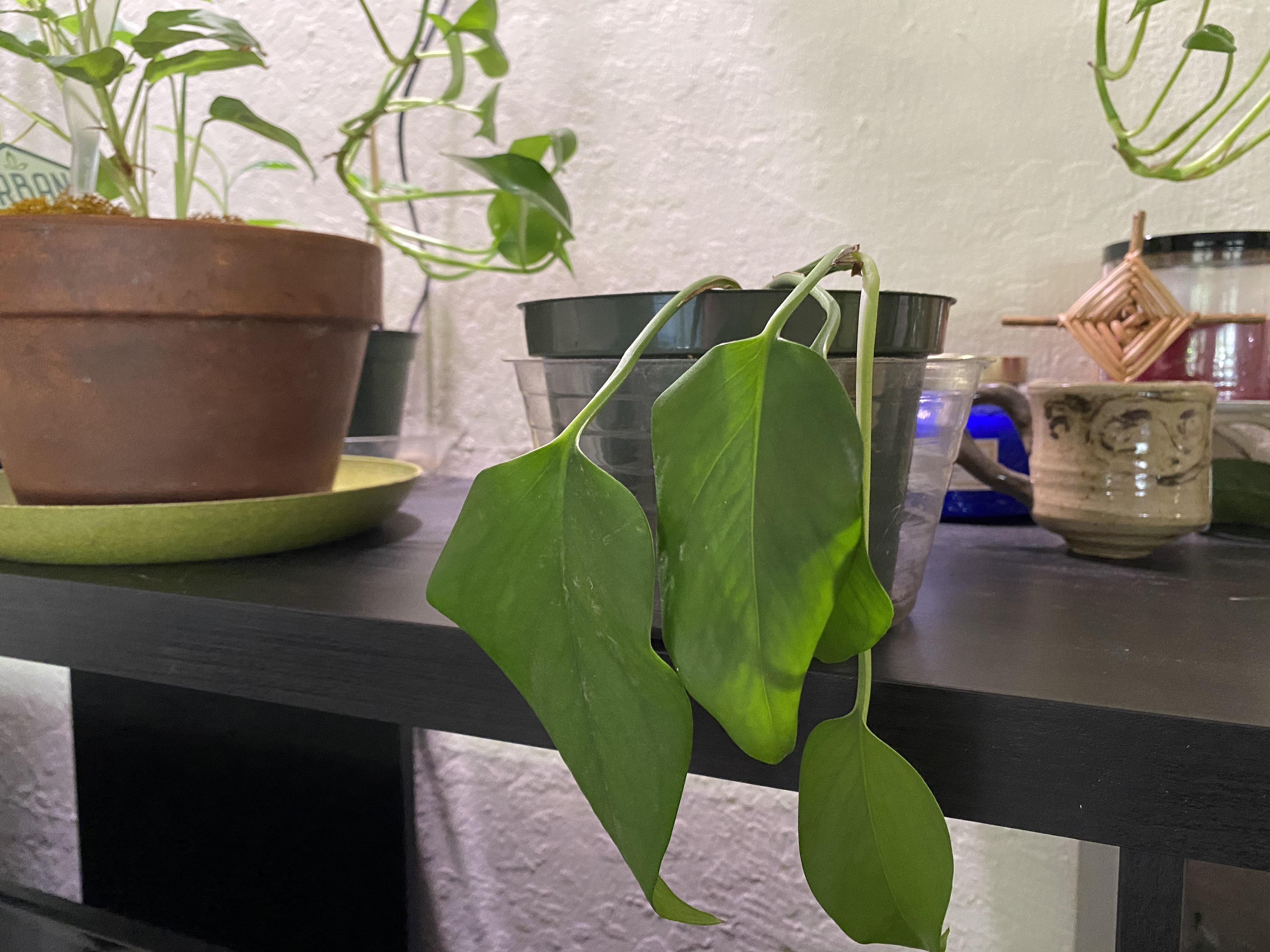 有一天,我突然發現他們垂頭喪氣,嚇我好大一跳。阿丹告訴我黃金葛的週期就是這樣,澆水又會活過來了,經過幾次週期,我才相信。